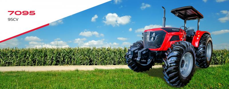 Mais moderno, mais forte e muito mais prático, o trator Mahindra 7095 (95cv) da Série S foi projetado para apresentar novas soluções ao produtor rural. Oferece design contemporâneo, melhor ergonomia, capô com abertura total, plataforma integral de operação, sistema de iluminação por conjunto óptico de LED e custo operacional sem igual no mercado brasileiro.